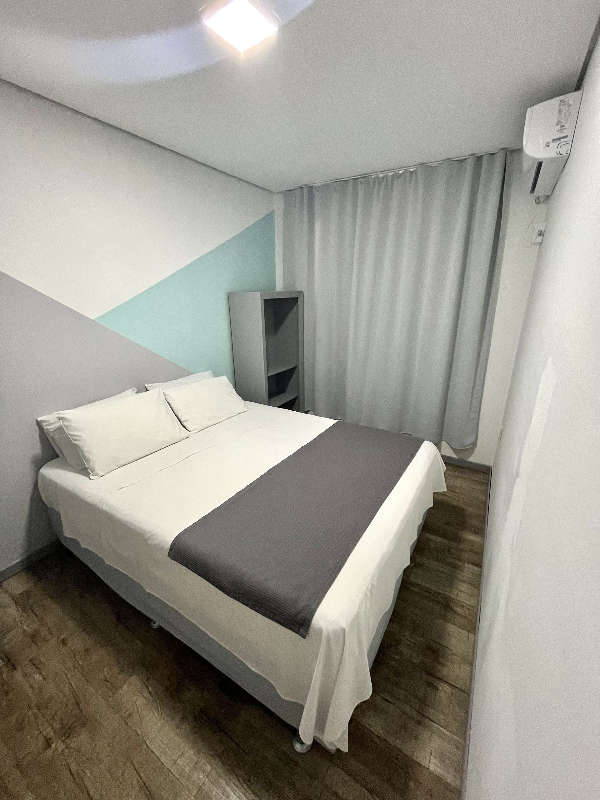 A Suíte Duplo Casal possui uma cama de casal padrão, banheiro privativo, ar-condicionado, televisor smart, frigobar, armário e mesa de trabalho. Incluso roupa de cama, toalhas e café da manhã.
